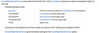 - $CloudObjectNameFormat gives the default setting for the CloudObjectNameFormat option.