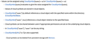 - CloudSymbol["name"] by default references a cloud object with the specified name within the directory $CloudSymbolBase.