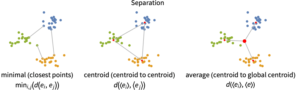 - Common separation definitions (intercluster distances):