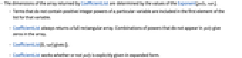 - The dimensions of the array returned by CoefficientList are determined by the values of the Exponent[poly,vari].