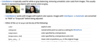 - ColorBalance works with images with explicit color spaces. Images with ColorSpace->Automatic are converted to "RGB" or "Grayscale" before being adjusted.