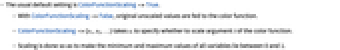 - ColorFunctionScaling->{s1,s2,…} takes si to specify whether to scale argument i of the color function.
