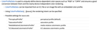 - Using ColorProfileData[…][intent], the rendering intent can be specified.