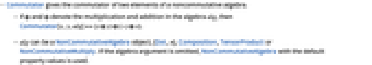 - Commutator gives the commutator of two elements of a noncommutative algebra.