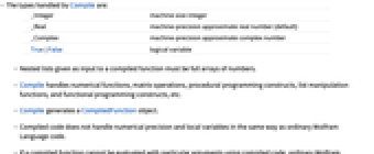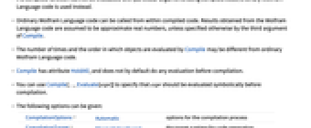 - Compiled code does not handle numerical precision and local variables in the same way as ordinary Wolfram Language code.