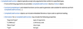 - CompiledCodeFunction objects can include embedded libraries or byte code to optimize loading.