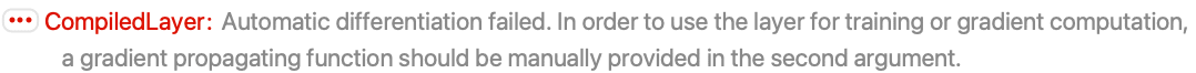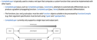 - CompiledLayer[func], such as CompiledLayer[func,Automatic], attempts to automatically differentiate func to produce a gradient propagating function. CompiledLayer[func,None] disables automatic differentiation.