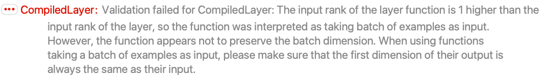 Specify an input of rank 1 in CompiledLayer. The function is now interpreted to act on the batch level: