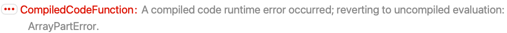 The CompiledCodeFunction generated by FunctionCompile throws an error: