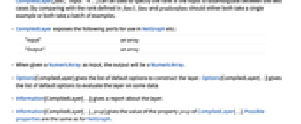 - Information[CompiledLayer[…],prop] gives the value of the property prop of CompiledLayer[…]. Possible properties are the same as for NetGraph.