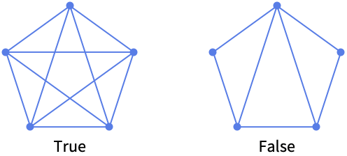 Wolfram Research (2010), CompleteGraphQ, Wolfram Language function, https://reference.wolfram.com/language/ref/CompleteGraphQ.html (updated 2014).