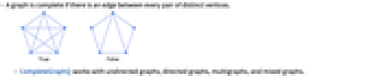 - A graph is complete if there is an edge between every pair of distinct vertices.