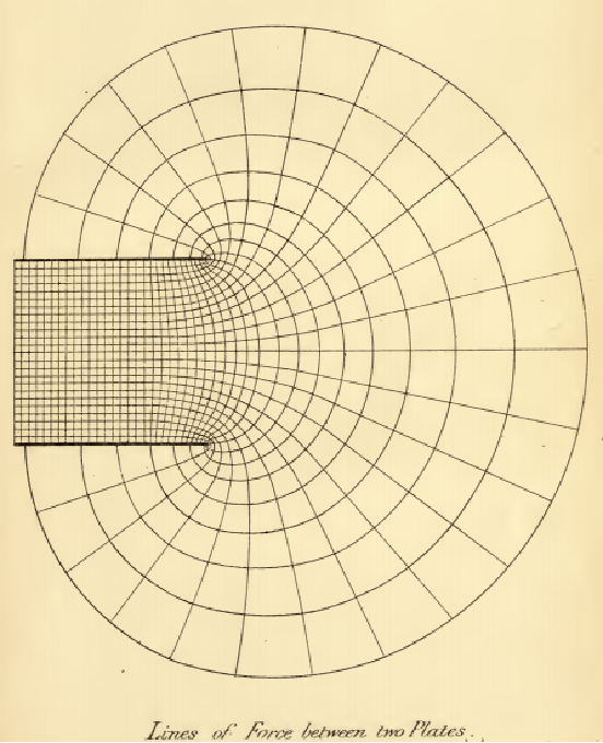 Recreate a famous image (Fig. XII) from A Treatise on Electricity and Magnetism by James Clerk, 1873. Maxwell showing equipotential surfaces for two semi-infinite planes that form a capacitor: