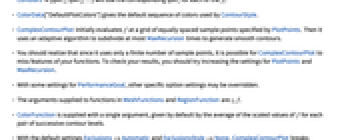 - In determining how to color regions between contour levels, ComplexContourPlot looks first at any explicit setting given for ContourShading, then at the setting for ColorFunction.