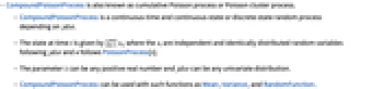 - CompoundPoissonProcess can be used with such functions as Mean, Variance, and RandomFunction.