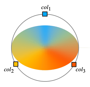 is a two-dimensional graphics directive specifying that faces of polygons and other filled graphics objects are to be drawn using a progressive transition between colors coli along a circle.