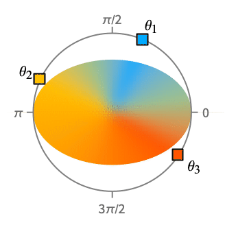 - ConicGradientFilling[{θ1,θ2,…,θn}{col1,col2,…,coln}] specifies colors coli to use at the angle θi from