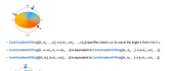 - ConicGradientFilling[{{θ1,θ2},{col1,col2},…}] is equivalent to ConicGradientFilling[{θ1,θ2,…}{col1,col2,…}].