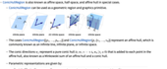 - ConicHullRegion is also known as affine space, half-space, and affine hull in special cases.
