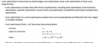 - Conic optimization is also known as mixed-integer conic optimization, linear conic optimization or linear conic programming.