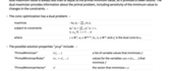 - The primal minimization problem has a related maximization problem that is the Lagrangian dual problem. The dual maximum value is always less than or equal to the primal minimum value, so it provides a lower bound. The dual maximizer provides information about the primal problem, including sensitivity of the minimum value to changes in the constraints. »