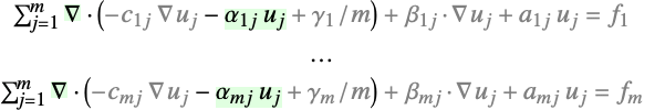 - For a system of PDEs with dependent variables {u1,…,um}, the conservative convection represents: