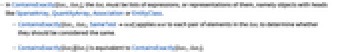 - ContainsExactly[list1,list2,SameTesttest] applies test to each pair of elements in the listi to determine whether they should be considered the same.