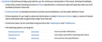 - ContinuousTask is intended primarily for private cloud installations, not the public Wolfram Cloud.