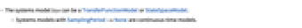 - Systems models with SamplingPeriod->None are continuous-time models.
