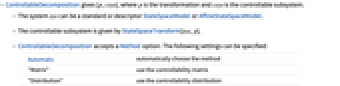 - ControllableDecomposition gives {p,csys}, where p is the transformation and csys is the controllable subsystem.