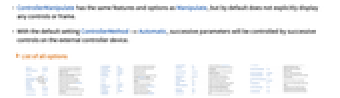 - With the default setting ControllerMethod->Automatic, successive parameters will be controlled by successive controls on the external controller device.