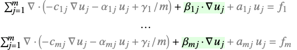 - For a system of PDEs with dependent variables {u1,…,um}, the convection represents: