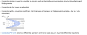 - Convection terms are used in a number of domains such as thermodynamics, acoustics, structural mechanics and fluid dynamics.