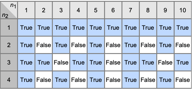 - CoprimeQ[n1,n2] returns False unless n1,n2 are manifestly relatively prime.