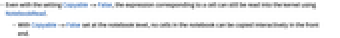 - With Copyable->False set at the notebook level, no cells in the notebook can be copied interactively in the front end.