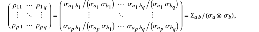 : - where Σa b=Covariance[a,b] and σa=StandardDeviation[a] etc.