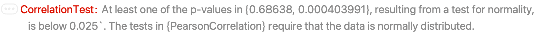 - The "PearsonCorrelation" test assumes the data was drawn from a normal distribution.