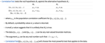 ., - CorrelationTest[{{x1,y1},{x2,y2},…},ρ0] will choose the most powerful test that applies to the data.