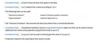 - CorrelationTest[…,All] will choose all tests that apply to the data.