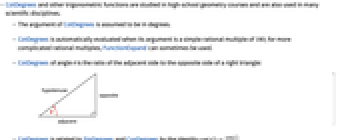 is the ratio of the adjacent side to the opposite side of a right triangle: - CotDegrees is related to SinDegrees and CosDegrees by the identity