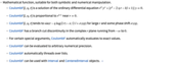 . - For certain special arguments, CoulombF automatically evaluates to exact values.