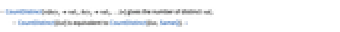 - CountDistinct[<|key1val1,key2val2,…|>] gives the number of distinct vali.