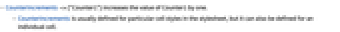 - CounterIncrements is usually defined for particular cell styles in the stylesheet, but it can also be defined for an individual cell.