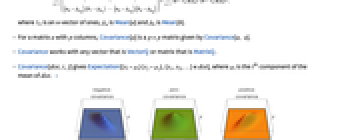 - Covariance[dist,i,j] gives Expectation[(xi-μi)(xj-μj),{x1,x2,…}∈dist], where μi is the i