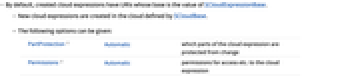 PartProtection Automatic which parts of the cloud expression are protected from change Permissions Automatic permissions for access etc. to the cloud expression