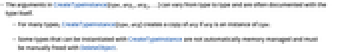 - Some types that can be instantiated with CreateTypeInstance are not automatically memory managed and must be manually freed with DeleteObject.