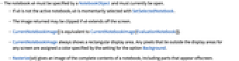 - CurrentNotebookImage[] is equivalent to CurrentNotebookImage[EvaluationNotebook[]].