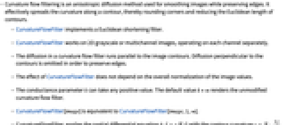 - Curvature flow filtering is an anisotropic diffusion method used for smoothing images while preserving edges. It effectively spreads the curvature along a contour, thereby rounding corners and reducing the Euclidean length of contours.