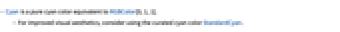 Wolfram Research (2004), Cyan, Wolfram Language function, https://reference.wolfram.com/language/ref/Cyan.html (updated 2025).