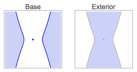 Find CylindricalDecompositionFunction representations of the solution region and its exterior: